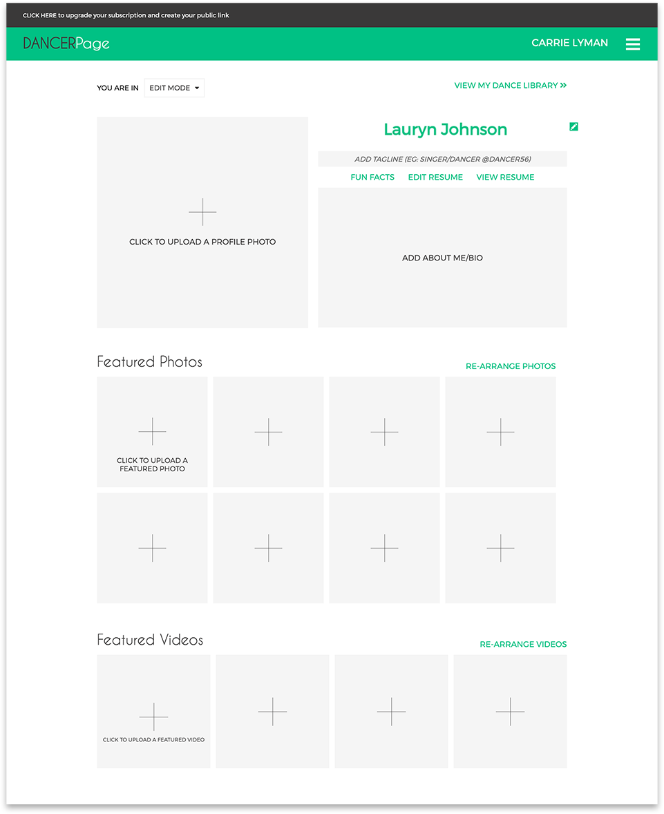 Clicking on any section of your DANCERPage and following the instructions.