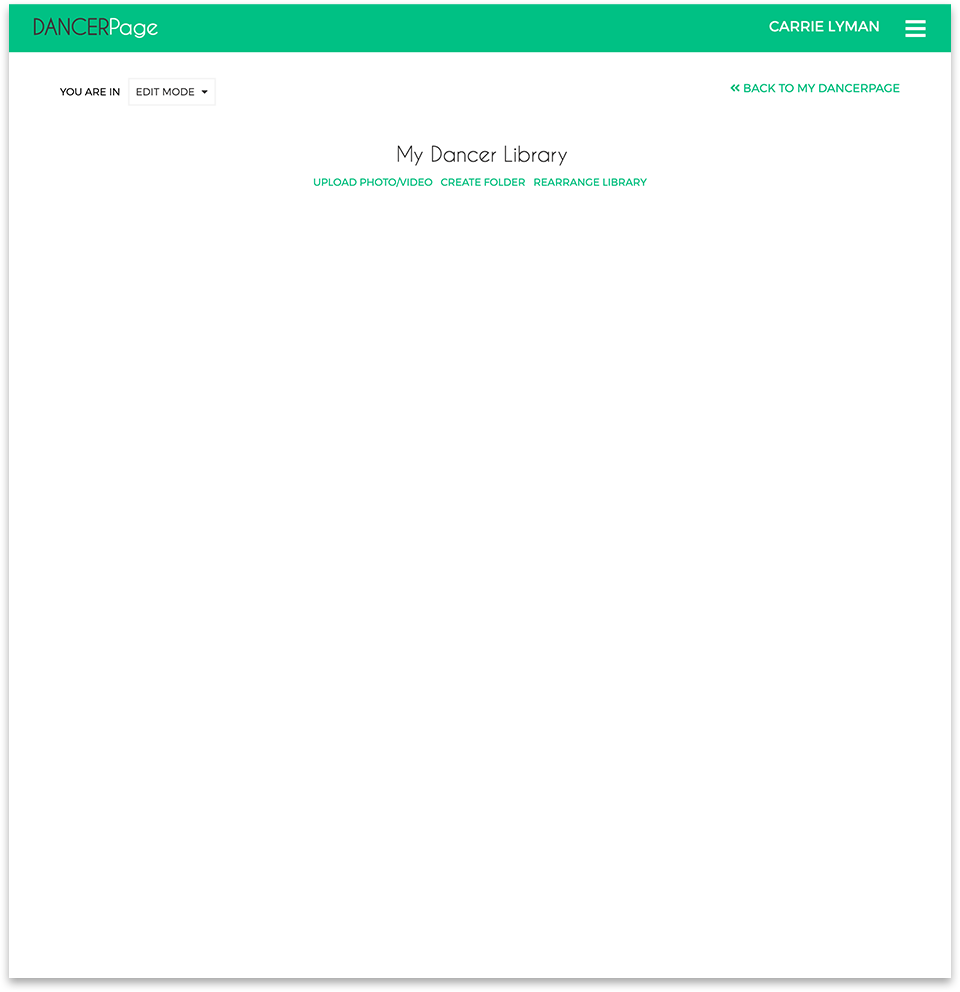 Or going directly to your Dance Library to begin uploading your media.
